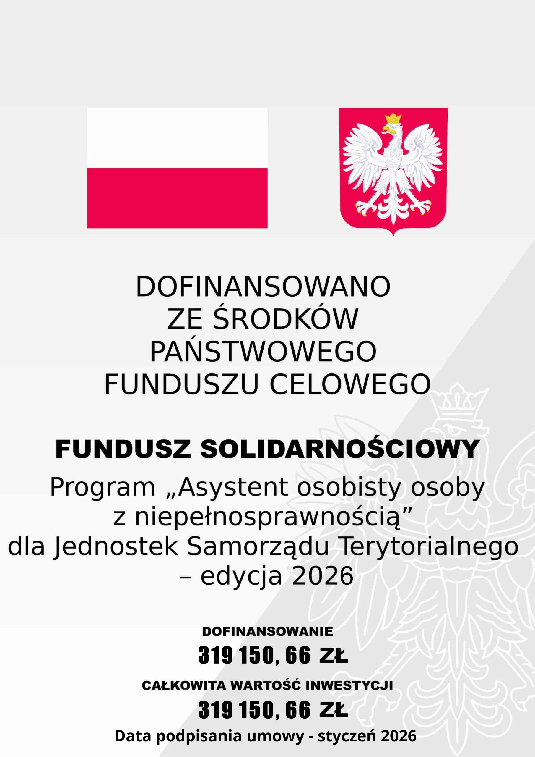 Wnioskowana kwota dofinansowania wynosiła 725 342,40 zł, natomiast przyznane środki na realizację programu w 2026 roku to 319 150,66 zł.